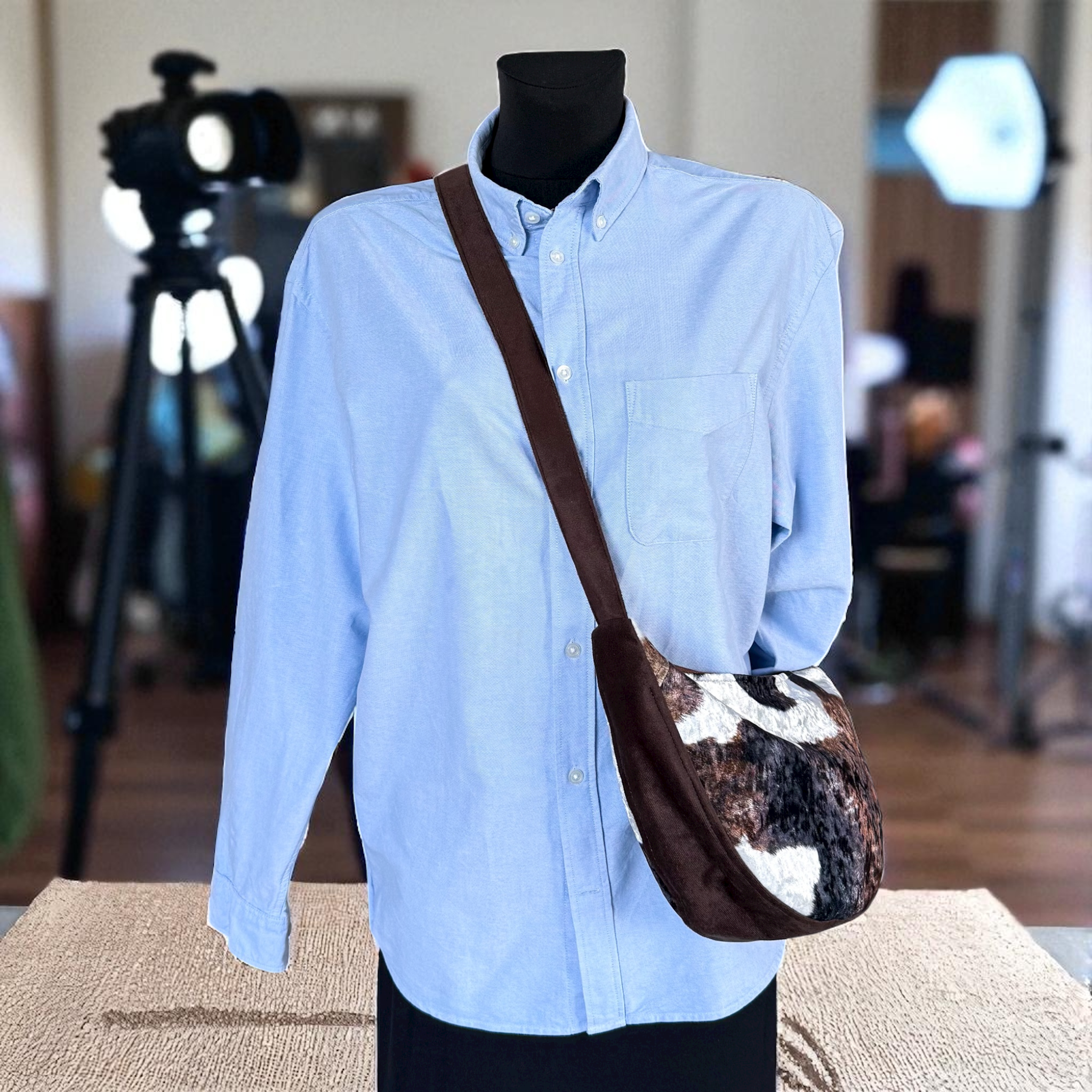 Wzór krowich łat to jeden z najmocniejszych trendów 2025 roku – pojawia się na wybiegach, w streetwearze i w kolekcjach najważniejszych marek. Dodaje charakteru każdej stylizacji i przyciąga uwagę swoją oryginalnością. Ten model półksiężyca łączy modny motyw z praktyczną formą, tworząc dodatek, który wyróżnia się w tłumie.