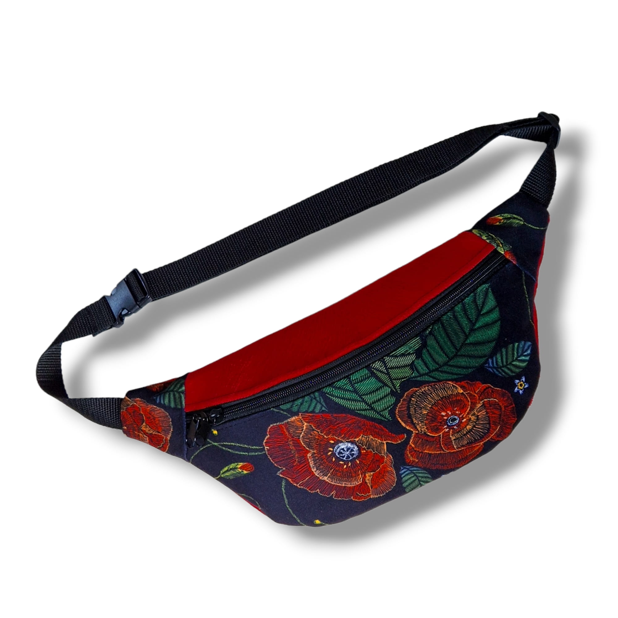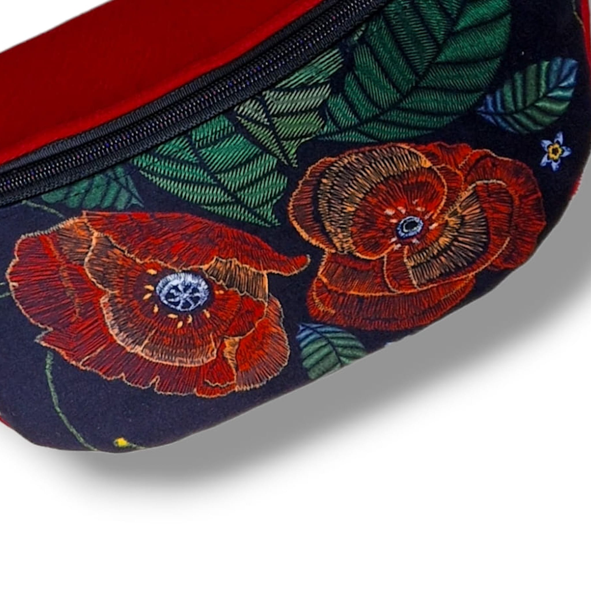 NERKA DAMSKA - CZERWONE MAKI - SZYTA RĘCZNIE