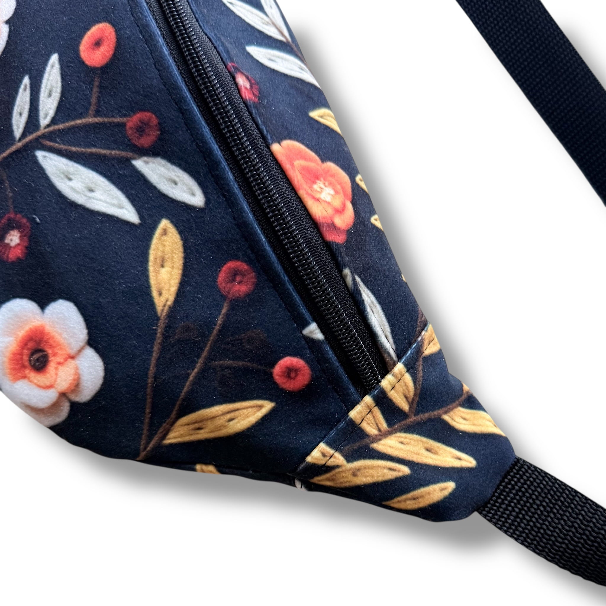 Lubisz dodatki, które są praktyczne, a jednocześnie mają charakter? Ta nerka została uszyta z weluru tapicerskiego - tkaniny miłej i przyjemnej w dotyku a jednocześnie trwałej i wytrzymałej. Efektu dodają doszyte nadrukowane filcowe kwiatuszki tworzące efekt 3D. Dzięki swojej fakturze i ciekawemu zestawieniu barw świetnie urozmaici codzienne stylizacje, a modne odcienie dodają jej świeżości i sprawiają, że łatwo dopasujesz ją do trendów.
