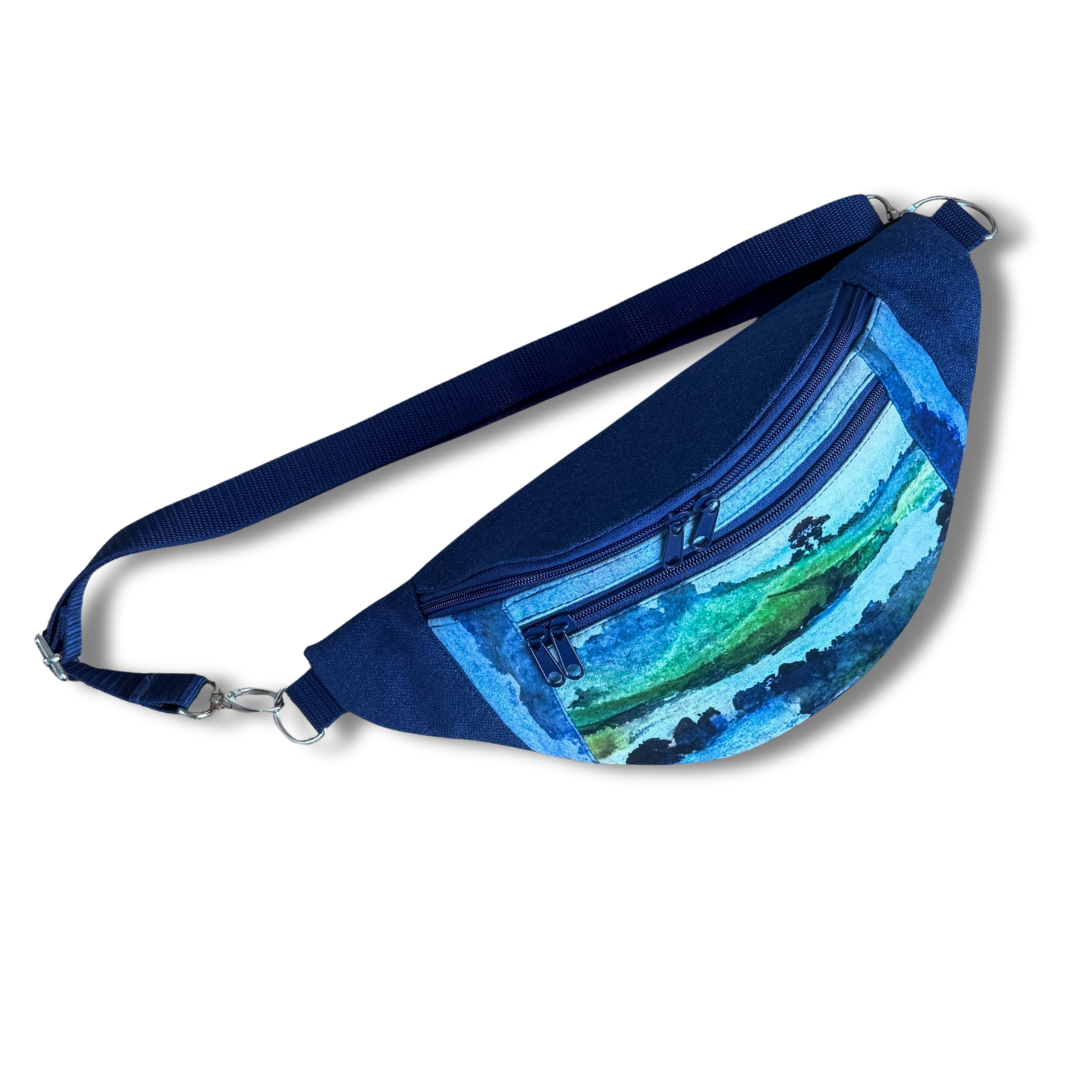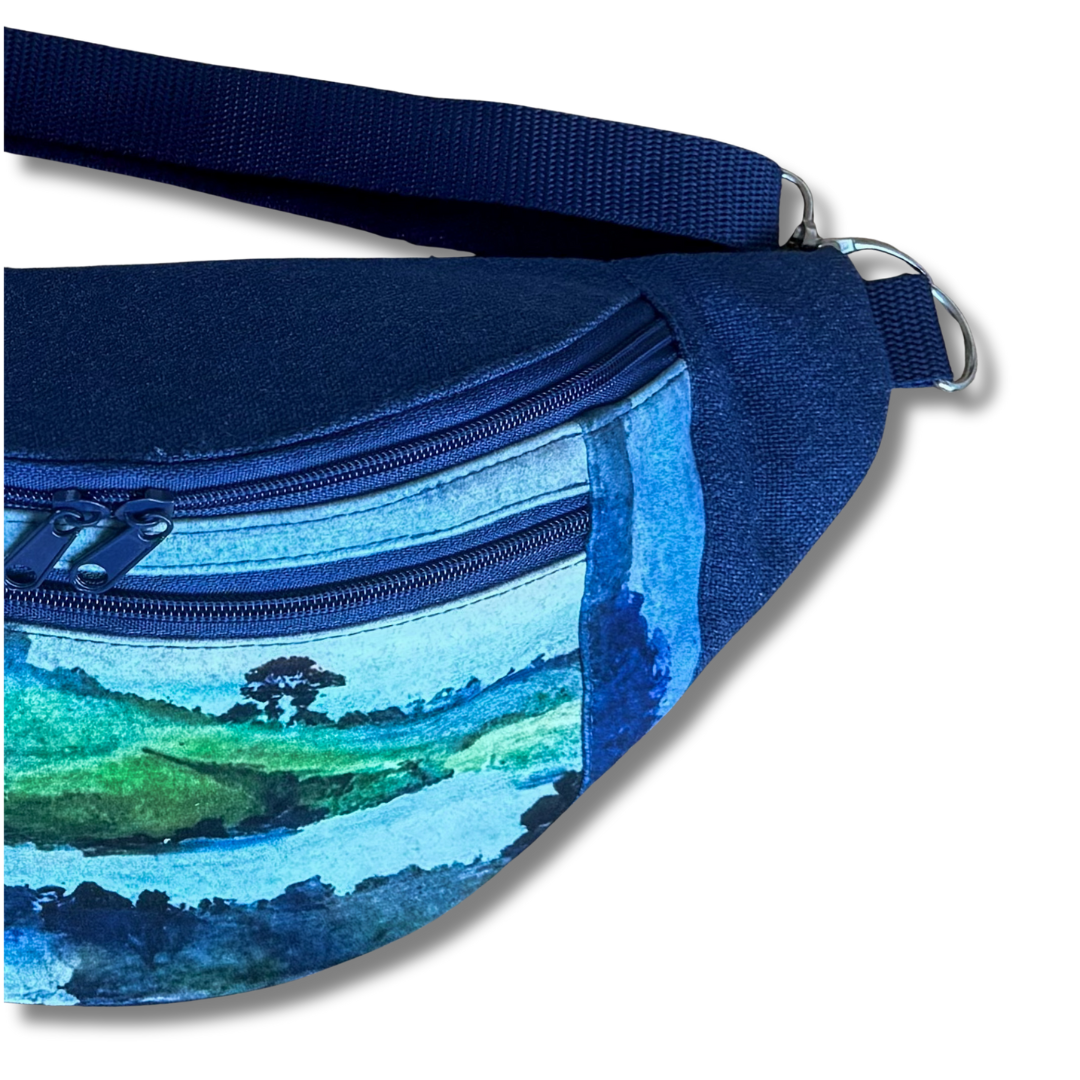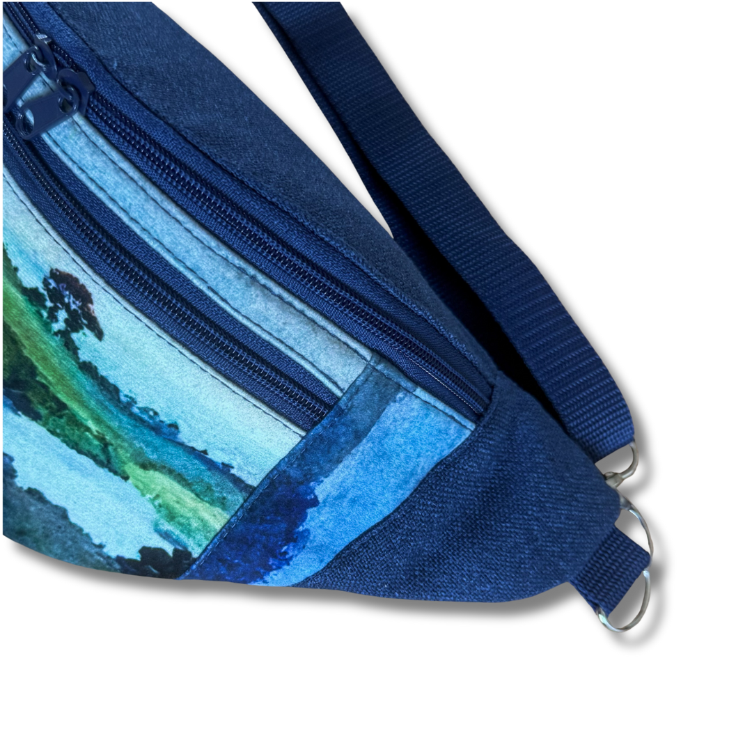 Zapinana jest na solidny, srebrny karabińczyk. Regulowany pasek pozwala nosić ją tak, jak jest Ci wygodniej – klasycznie na biodrach lub przewieszoną przez ramię.