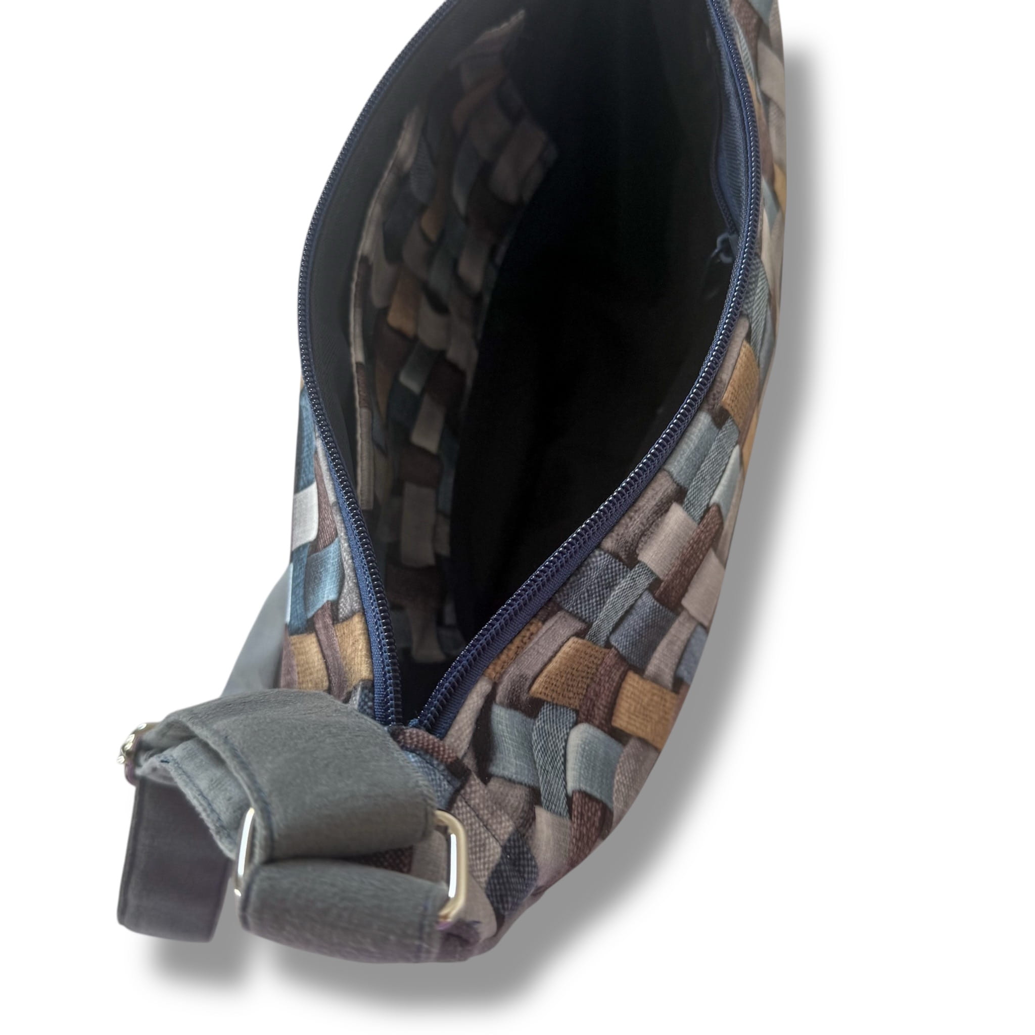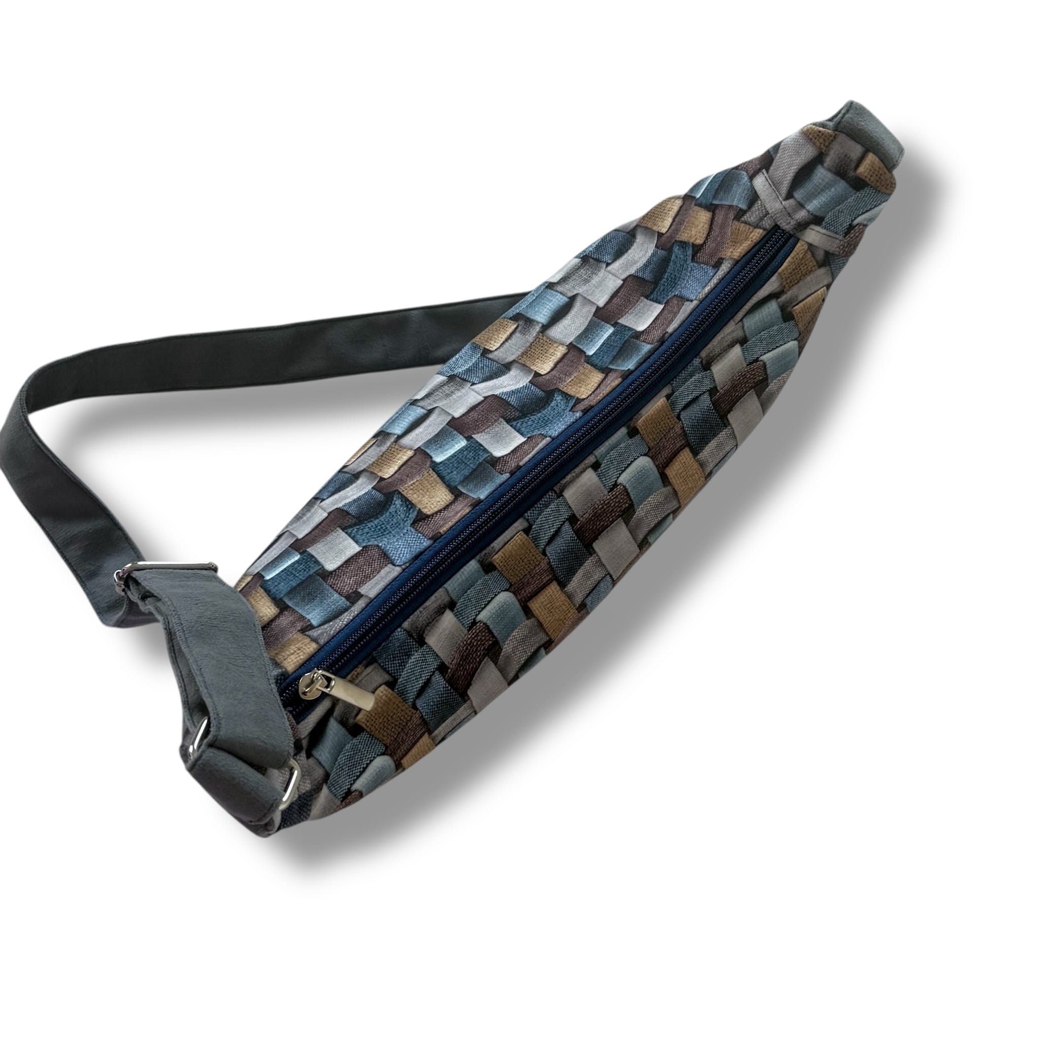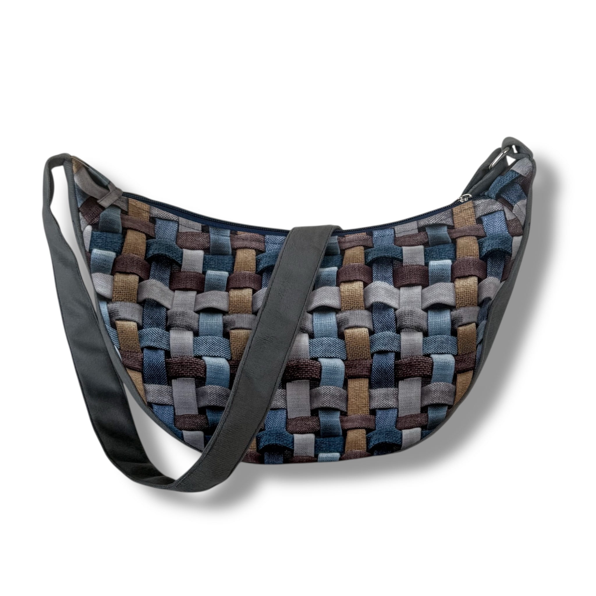 Wytrzymała tkanina tapicerska zapewnia kształt i trwałość na lata. Regulowany szary pasek umożliwia noszenie na ramię lub crossbody, idealnie dopasowując się do Twojego stylu.