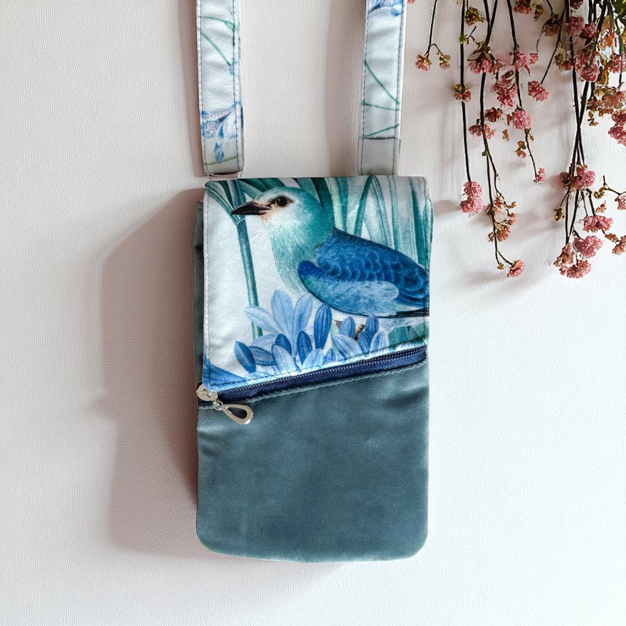TOREBKA FONKA DAMSKA - NIEBIESKI PTAK - RĘCZNIE SZYTA