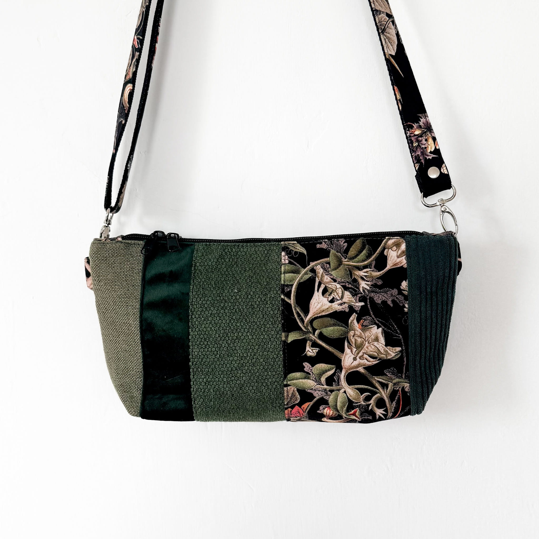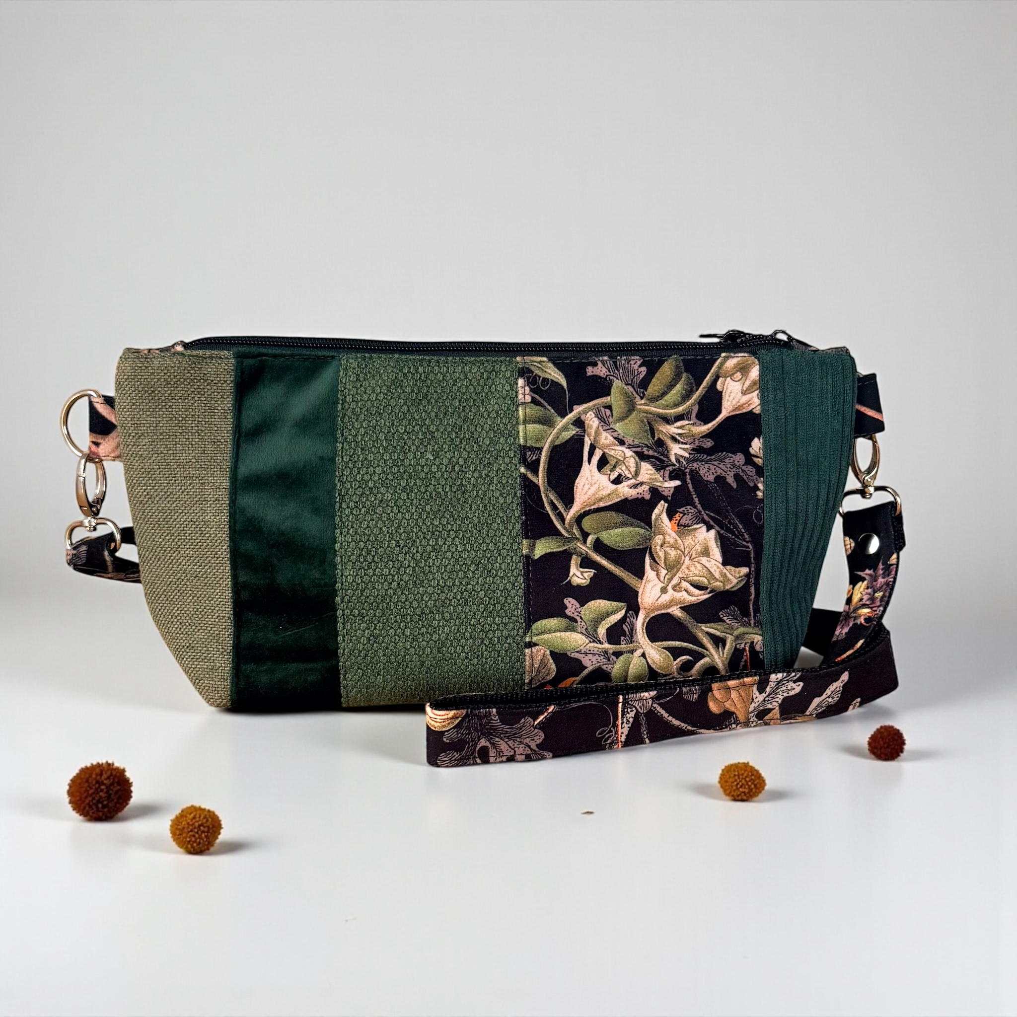 Funkcjonalna, kompaktowa torebka wykonana z końcówek tkanin tapicerskich. Każdy fragment torebki ma inną fakturę - od grubej plecionki, poprzez gładki welur aż po sztruks. Dzięki dwustronnej konstrukcji możesz nosić ją na dwa sposoby – wybierając styl w zależności od okazji. Powstał tylko jeden egzemplarz takiej torebki - na pewno nie spotkasz na ulicy nikogo z taką samą :)